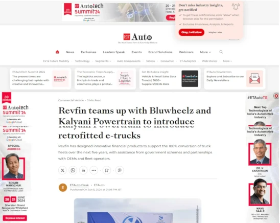 Revfin teams up with Bluwheelz and Kalyani Powertrain to introduce retrofitted e-trucks