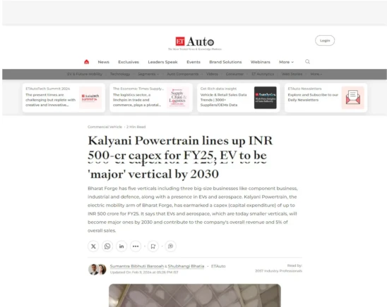Kalyani Powertrain lines up INR 500-cr capex for FY25, EV to be 'major' vertical by 2030
